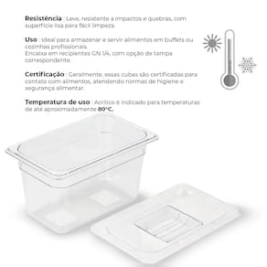 Imagine-se no coração de uma cozinha profissional, onde cada segundo conta e cada detalhe faz a diferença. Você, um chef apaixonado ou um organizador de eventos, sabe como a apresentação e a eficiência são cruciais para impressionar seus clientes e amigos. É nesse cenário que a nossa **Cuba Gastronômica de Acrílico GN 1/4** se destaca, transformando seu modo de preparar e servir.