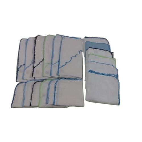 6 cueiro flanelado liso 80x80 com acabamento em crochê feito a maquina 6 fralda de boca quadriculada 33x33cm com acabamento em crochê feito a maquina 6 fralda quadriculada com capuz 68x78cm com acabamento em crochê feito a maquina