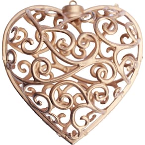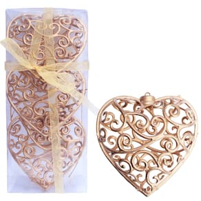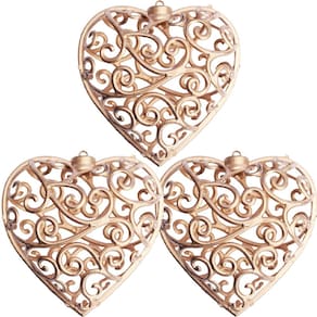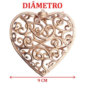 2 Kits com 3 Corações Pendentes De Árvore De Natal Dourada 9cm De Diâmetro;