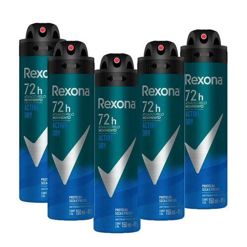 • A exclusiva fórmula do Desodorante Aerosol Masculino Rexona Active Dry garante 72 horas de proteção contra o suor e o mau odor ativado pelo movimento