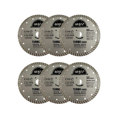 Kit 6 Disco De Corte Diamantado Turbo Hard 180X22,23Mm Matz