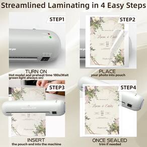 - 3 minutos de aquecimento para economizar seu tempo: sabemos que seu tempo é precioso, seja você um professor ocupado preparando materiais de sala de aula ou um pai laminando fotos de família queridas. É por isso que este laminador se aquece em apenas 3 minutos! Sem esperas longas nem momentos perdidos: realize suas tarefas com mais rapidez para que você possa se concentrar no que realmente importa.