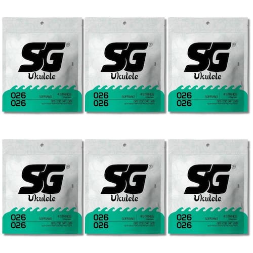 Kit 6 Encordoamento Ukulelê Sg Nylon Branco Soprano 0.026