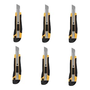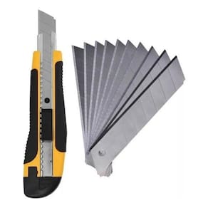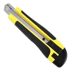 Kit 6 Estiletes 18mm Amarelo/Preto - Possui 1 lâmina de alta qualidade por estilete + 18 lâminas de reposição. - Empunhadura de plástico e cabo anatômico - Plástico reforçado - Alta durabilidade para e doméstico Material do corpo do estilete: Plástico revestido com borracha termoplástica Tipo da lâmina: Reta segmentada Largura da lâmina mm : 18,0 Medidas: 17cm de comprimento. 1,5cm de largura. 4cm de altura do vendedor: 3 meses Marca: Kadê