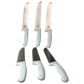 Kit 6 Facas de Carne 8 - Cabo de Plástico Aposte na qualidade e precisão para o seu preparo de carnes com o Kit de 6 Facas de Carne 8 . Perfeitas para chefs, churrasqueiros e entusiastas da culinária, essas facas oferecem lâminas afiadas de 8 polegadas, ideais para cortar carnes com precisão e facilidade. Características: Lâmina de alta qualidade: Fabricada com aço de alto carbono, garantindo durabilidade e corte preciso. Cabo de plástico ergonômico: Oferece conforto e segurança ao manuseio, prevenindo escorregamentos. Tamanho ideal: Com 8 polegadas, elas são perfeitas para cortes de carnes variadas, desde bifes até carnes mais espessas. Design : Ideal para uso em cozinhas comerciais, churrascos e até no dia a dia. Comprimento total: 33 cm. Espessura: 1,2 mm. Este kit é ideal para quem busca ferramentas profissionais com excelente custo-benefício. Seja para o uso doméstico ou , essas facas garantem cortes limpos e rápidos. Não perca a oportunidade de melhorar a qualidade de seus preparos com o Kit 6 Facas de Carne 8. Marca: Não Informado