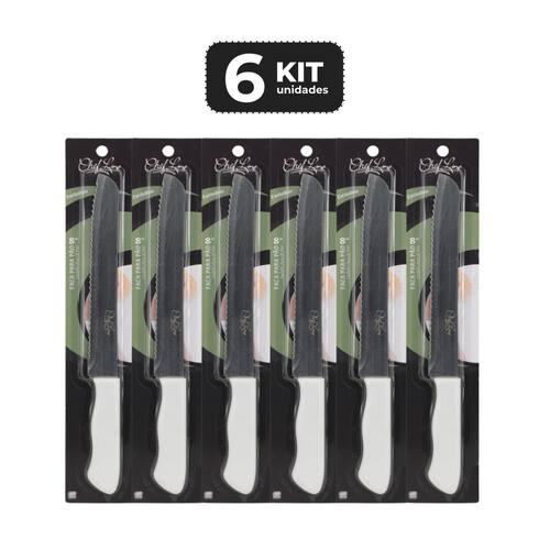 Faca de pão profissional de inox de 8" com cabo branco da linha Evolution é uma ferramenta de cozinha essencial e indispensável em sua casa. A lâmina serrilhada é projetada para cortar pães e outros alimentos de textura macia sem esmagá-los ou rasgá-los, permitindo que você faça fatias uniformes e precisas. A faca é feita de aço inoxidável de alta qualidade, durável e resistente à corrosão, e possui um cabo branco ergonômico para uma pegada segura e confortável. A linha Evolution é uma linha de facas projetada para oferecer durabilidade, conforto e desempenho.