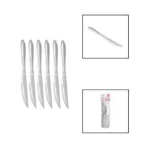 O Kit com 6 Facas de Mesa em Aço Inox é ideal para quem busca funcionalidade e sofisticação nas refeições do dia a dia ou em ocasiões especiais. Fabricadas em aço inoxidável de alta qualidade, as facas oferecem excelente poder de corte, resistência à corrosão e durabilidade prolongada, mantendo o brilho e o desempenho mesmo após muitos usos. Seu design ergonômico proporciona conforto e firmeza ao manusear, garantindo cortes precisos em diferentes tipos de alimentos. Práticas e elegantes, são perfeitas para compor jogos de talheres, valorizando qualquer mesa com equilíbrio entre beleza e eficiência.