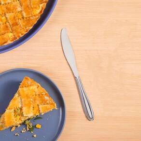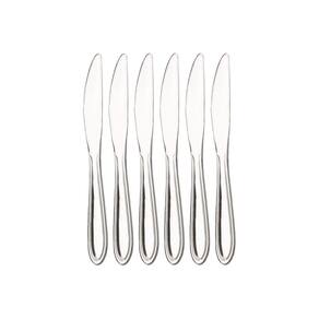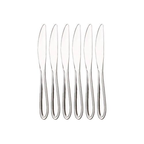 - 6 Facas de mesa Ponta arredondada : 21,3 cm; tamanho lâmina 10,9 cm e espessura 3 mm