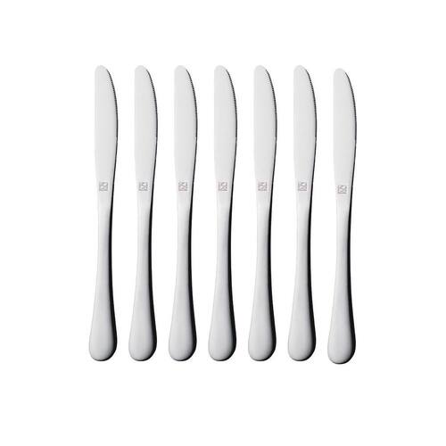 Composição: - 6 Facas de mesa Ponta arredondada : 22,6 cm; tamanho lâmina 12cm e espessura 3 mm