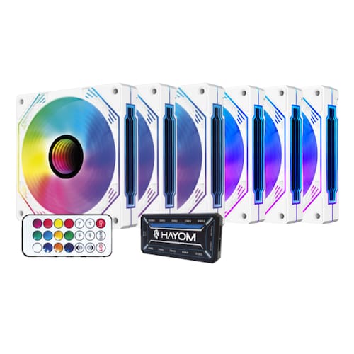 O Kit 6 Fan Cooler Hayom RGB 120mm com Controladora - Modelo FC1309 oferece uma solução eficiente e estilosa para o resfriamento de gabinetes de PCs. Com um design elegante em branco, esse kit é ideal para quem deseja otimizar o fluxo de ar dentro do gabinete enquanto adiciona um toque de iluminação RGB personalizável, tornando-o uma ótima escolha para setups gamers ou profissionais que exigem desempenho e estilo.