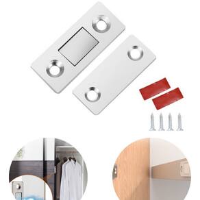 Evite portas abrindo sozinhas ou batendo! As travas magnéticas são ideais para armários, gavetas, portas de correr, móveis planejados e muito mais. ________________________________________ Destaques do Produto • Imã de neodímio super potente • Fixação com fita dupla face e parafusos (inclusos) • Instalação fácil, sem necessidade de furadeira • Ideal para madeira, MDF, alumínio e vidro • Design compacto e discreto ________________________________________ Especificações Técnicas • Material: Liga metálica + ímã de neodímio • Cor: Prata / Cinza metálico • Fixação: Parafusos + adesivo dupla face (inclusos) • Dimensões: Aprox. 4,5 x 1,5 cm • Itens Inclusos: o 6 travas magnéticas o 6 placas metálicas o 12 fitas dupla face o 12 parafusos ________________________________________ Modo de Instalação 1. Limpe bem a superfície. 2. Posicione a trava no local desejado. 3. Fixe com fita dupla face ou parafuse. 4. Encaixe o ímã com a placa metálica do lado oposto.