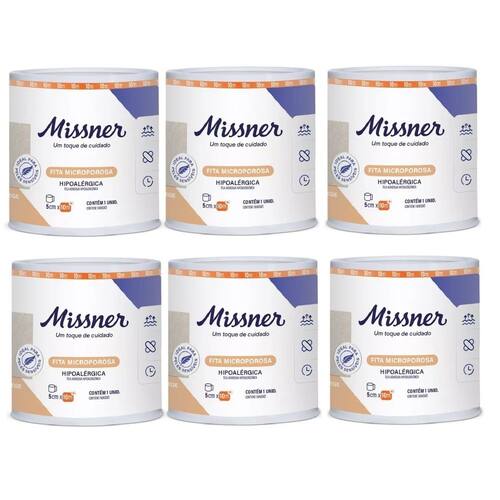 Kit 6 Unidades Fita Cirurgica Hipoalergênica Microporosa Bege 5cm x 10m
