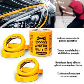 A fita crepe amarela da Adelbras é feita especialmente para mascaramento automotivo. Uso em estufa até 100°C e também para secagem ao ar livre. Possui barreira UV para resistência aos raios ultravioleta e exposição ao sol por até 48 horas. O modelo de fita amarela automotiva anti UV possui ótima adesão, resistente a solventes e umidade, ótima fixação em superfícies metálicas, plásticas e borracha. Não deixa resíduo após a remoção. Disponível somente na cor Amarela.