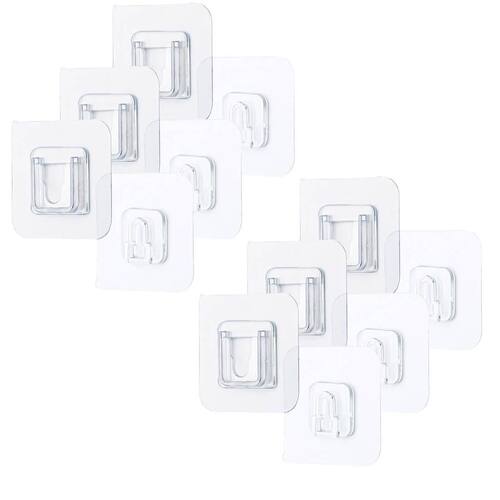 Kit 6 Ganchos Adesivo de Encaixe Transparente Multiuso Ganchos ideais para locais com superfície lisas como azulejos, pisos, madeiras envernizadas, vidro, inox e qualquer outra superfície apta a adesivação. O mais legal desse sistema de gancho é que a instalação é rápida, sem furos e sem sujeira, cole uma parte da superfície que deseja fixar e a outra no objeto que quer pendurar encaixe e pronto