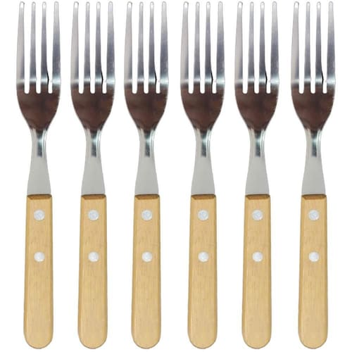 6 Garfo De Mesa Inox Com Cabo De Madeira 19 cm Kit contendo 6 Garfos de Mesa Inox com cabo de madeira 19 cm