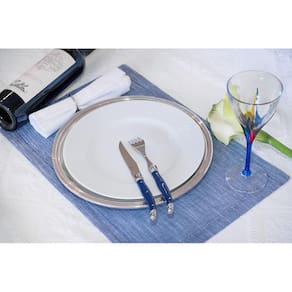 Conjunto de 6 Garfos Laguiole LA TOUR tm Luxo. Toda a tradição das facas Laguiole é encontrada nesta linha. A parte de metal é feita em aço inoxidável de altíssima qualidade com cabo em ABS Marfim. O conjunto de garfos é entregue em uma elegante bandeja de madeira. Descrição: -materiais: ABS e Aço Inox -tamanho: 25,5cm x 13cm x 3cm -cor: azul -peso: 0,410g -utilização: De preferência por não usar maquina de lavar-louças.