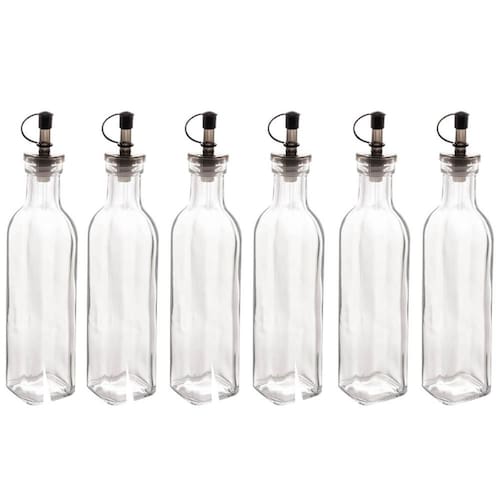 Kit 6 Garrafas de Vidro para Azeite ou Vinagre 270ml com Bico Dosador e Tampa Lyor.