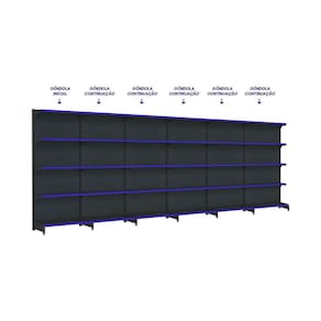 Nosso kit com 6 gôndolas de parede na cor preta é ideal para armazenamento e exposição de produtos em supermercados, mercearias, farmácias, lojas de utilidades, materiais de construção, agropecuárias, e muito mais, variando de acordo com a capacidade de peso de cada modelo.com 2,02m de altura, esta gôndola proporciona uma exibição eficiente dos produtos, maximizando o espaço vertical da sua loja e permitindo uma organização prática e acessível.as gôndolas possuem uma capacidade de 40kg por bandeja. com pintura eletrostática epóxi, antibacteriana, uniforme e resistente.possui bandejas com inclinação em 3 posições e bandejas reguláveis na coluna a cada 25mm, o que permite adição de bandejas extras. a bandeja é construida em chapa 26 (espessura de 0,50mm). fundo da bandeja quadrado para melhor exposição.pés com regulagem de altura, colunas dupladas e tratamento especial da superfície.a gôndola é prática e fácil de montar, com sistema de encaixe sem utilização de parafusos. você pode instalar suas gôndolas rapidamente, sem complicações, permitindo que você comece a exibir seus produtos em pouco tempo.todas as nossas gôndolas possuem qualidade, resistência e durabilidade garantidas pelo uso de matérias-primas de alto padrão, processos produtivos com a mais atual tecnologia e um cuidado especial em cada etapa.modernas e elegantes, nossas gôndolas são projetadas para destacar seus produtos e criar um ambiente agradável de compras para seus clientes, incentivando a exploração e aumentando as vendas.aproveite ao máximo cada centímetro disponível em sua loja com nossas gôndolas projetadas para maximizar o espaço de exposição, permitindo uma ampla variedade de produtos em um layout eficiente.- capacidade de 40kg por bandeja;- colunas dupladas: com sistema de encaixe, sem utilização de parafusos;- tecnologia exclusiva de apoio sgl;- pés reforçados e com regulagem;- bandejas inclináveis: oferece 3 opções para melhor exposição;- bandejas reguláveis a cada 25mm: possibilidade de adicionar bandejas extras;- reforço na base e bandeja: para maior capacidade de carga e estabilidade;- bandeja é construida em chapa 26;- ponteira da coluna: maior proteção e durabilidade.*porta etiquetas: vendidos separadamente, em variadas opções de cores.> o kit contém- 01x gôndola new premium 2,02m preta parede inicial- 05x gôndola new premium 2,02m preta parede continuação> especificaçõesgôndola parede inicialmodelo: gôndola de centro iniciallinha: fit 40altura: 2,02mcor: pretaquantidade de bandeja: 5peso suportado por bandeja: 40kgchapa: 26gôndola parede continuaçãomodelo: gôndola de parede continuaçãolinha: fit 40altura: 2,02mcor: pretaquantidade de bandeja: 5peso suportado por bandeja: 40kgchapa: 26> medidas do produtogôndola parede inicialaltura: 2,02mlargura: 0,96mpeso: 26kglargura da bandeja: 0,90mprofundidade da bandeja base: 0,40mprofundidade das bandejas superiores: 0,30mgôndola parede continuaçãoaltura: 2,02mlargura: 0,93mpeso: 20kglargura da bandeja: 0,90mprofundidade da bandeja base: 0,40mprofundidade das bandejas superiores: 0,30m> garantia- 6 meses> troca e devoluçãomediante termos da política de trocas e devoluções da empresa.