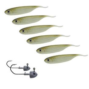 Kit com 6 iscas soft de silicone + 2 anzois zig head.