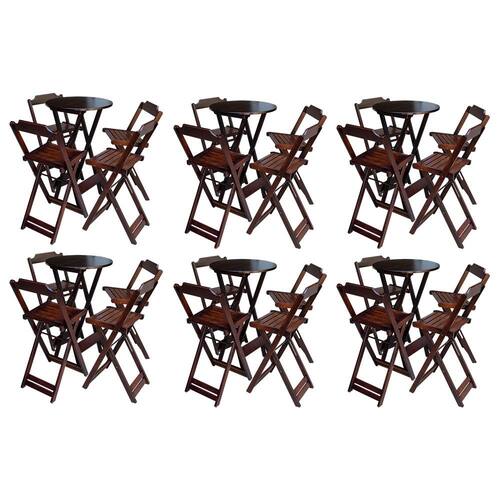 Kit 6 Jogos De Mesa Bistrô De Madeira Com 4 Cadeiras Dobravel Ideal Para Bar E Restaurante Imbuia é ideal para bares, restaurantes, estabelecimentos, áreas de lazer e tambem para sua casa. Feito em madeira maciça, tornando resistentes e duráveis. Seu design permite que seja encaixado em qualquer ambiente, trazendo um toque a mais para seu estabelecimento. Além de sua durabilidade, o que lhe trará conforto para servir seus clientes. Por ser dobrável torna-se mais fácil guardar, manusear e limpar o produto. Atenção: EVITE USAR PRODUTOS ABRASIVOS E QUíMICOS PARA LIMPEZA DO PRODUTO, aconselha-se o uso de pano umedecido para melhor conservação; mantenha o produto fora de chuva e sol constantes. OBS: MDF ULTRA