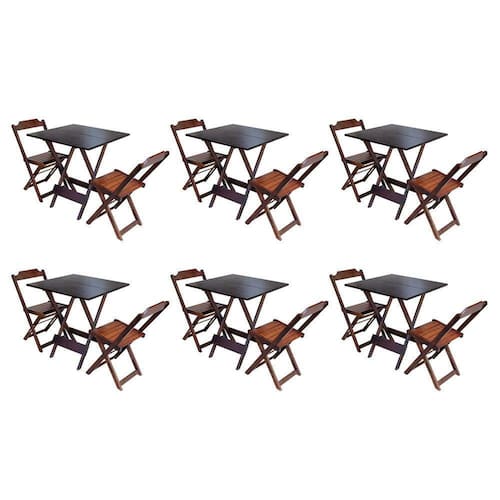 Kit 6 Jogos De Mesa Dobravel Com 2 Cadeiras De Madeira 70x70 Ideal Para Bar E Restaurante - Imbuia - Cor: Marrom