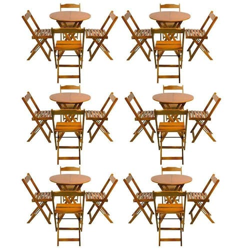 Kit 6 Jogos De Mesa Dobravel Com 4 Cadeiras Tampo Redondo 70x70 Mel é ideal para bares, restaurantes, estabelecimentos, áreas de lazer e tambem para sua casa. Feito em madeira maciça, tornando resistentes e duráveis. Seu design permite que seja encaixado em qualquer ambiente, trazendo um toque a mais para seu estabelecimento. Além de sua durabilidade, o que lhe trará conforto para servir seus clientes. Por ser dobrável torna-se mais fácil guardar, manusear e limpar o produto. Atenção: EVITE USAR PRODUTOS ABRASIVOS E QUíMICOS PARA LIMPEZA DO PRODUTO, aconselha-se o uso de pano umedecido para melhor conservação; mantenha o produto fora de chuva e sol constantes. MESA Cor: Mel Modelo: Dobravel Dimensões: Altura 75cm | Largura 70cm | Profundidade 70cm CADEIRA Cor: Mel Modelo: Dobravel Dimensões: Altura 80cm | Largura 45cm | Profundidade 42cmKit 6 Jogos de Mesa Dobravel com 4 Cadeiras Tampo Redondo 70x70 Mel Marca: Preguiçosa