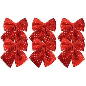 Adoce Seu Natal com o Kit de 6 Laços Decorativos de Espuma Veludo Vinho com Bolinhas Prata - 12cm x 13cm