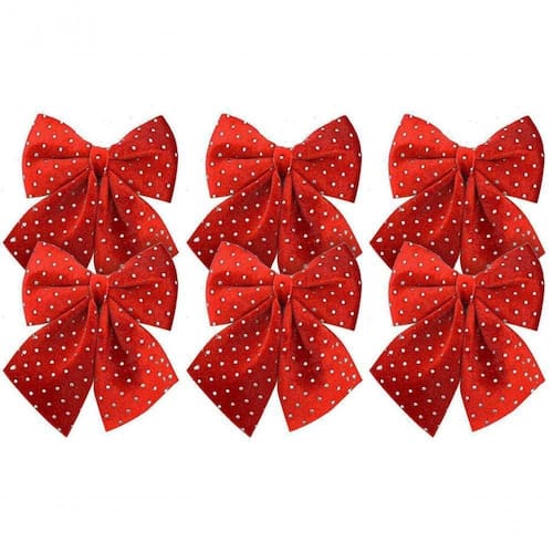 -06 unidades Laço Decorativo Natal Espuma Veludo Vinho Decorado Bolinhas Prata 12x13cm Magizi