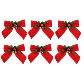 -6 unidades Laço Vermelho Aveludado 11x11cm Decorado Mini Sinos e Folhagens Berries