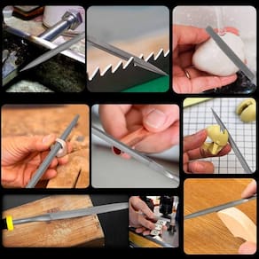Material: Aço forjado resistenteComprimento: 14 cm cada limaPunho: Revestido em borrachaAlta resistência ao desgasteGrão uniforme e afiação precisa