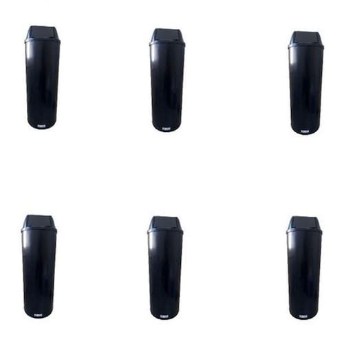 Kit 6 Lixeiras Cesto Alto com Tampa Vai-vem 22L Plástico Abertura Basculante para Cozinha e Escritório Preto