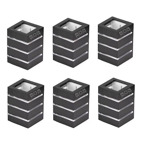 Kit 6 Luminárias Arandela Com 3 Aletas e 2 Fachos para Parede Externa ou InternaArandela perfeita para iluminação de garagens, jardins e demais ambientes externo. Devido a sua grade e aditivo anti-UV na sua injeção, a torna resistente tanto a chuva quanto ao sol. Soquete/Bocal em porcelana com potencia máxima de 40w. Lente em Policarbonato transparente.Deixe Sua Área Externa ou Interna Ainda Mais Bonita e Aconchegante Com a Luminária Arandela. Fácil de Instalar, Sofisticado, Belo Design, Acabamento impecável.A Arandela é uma solução simples e ideal para Iluminação de Áreas Externas ou Internas, residenciais ou comerciais, indicada para utilização na Parede é uma luminária coringa que combina com diversos ambientes.Design Elegante e Moderno e Lente em Policarbonato de Alta Resistência são algumas de suas característicasA luminária arandela é feita em material Policarbonato, o Qual Possui Alta Resistência ao Tempo, Tendo Como Característica a Durabilidade Diante da Maresia, Chuvas e Raios Solares, Contando Com Proteção UV em Sua Composição.Este Material é Bastante Utilizado Para Substituição do Metal, Tanto Pela Qualidade Quanto Pela Resistência, se Tornando Uma Ótima Opção de Custo Benefício.Caracteristicas:Material: PolicarbonatoMedidas: 10x10x13cm (CxLxA)Tensão: BivoltPotencia: 40W LedTipo do Soquete: G9 (Led)Instalação: Parede Interno ou externoKit de Instalação: NãoGarantia: 24 mesesMaterial disponível em nosso armazém. Marca: Syka Light