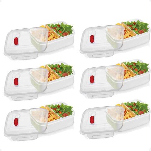 Kit 6 Marmita Due Com 2 Divisórias Para As Comidas 600Ml