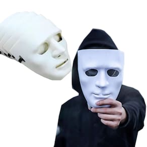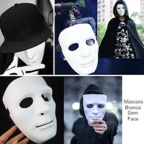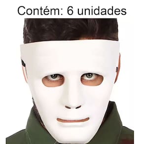 Kit 6 Máscaras Branca sem Face JabbaWockeez - Festa Fantasia Carnaval Cosplay Teatro Dança Máscara branca sem face: confeccionada em plástico duro, material leve e confortável. Encaixe perfeito para os olhos e abertura no nariz e boca. Ideal para compor fantasia, cosplay, apresentações, dança, teatro, pintura e para decoração de ambientes. Tamanho aproximado da máscara: 19 cm de altura x 17 cm de largura. Atenção: Recebemos novas remessas semanalmente e algum detalhe pode variar conforme o lote recebido, porém o produto é o mesmo e mantém as mesmas características e qualidade. Contém: 6 Máscaras Branca sem Face. Fotos ilustrativas e reais do produto.