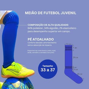 Não perca tempo! Garanta já seu Kit 6 Unidades de Meião de Futebol Juvenil 33/37 e eleve seu desempenho nos campos.