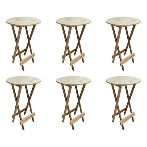 Kit 6 Mesas Bistrô De Madeira Dobrável Para Bar - Sem Pintura / Crua