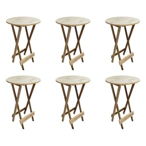 Kit 6 Mesas Bistrô De Madeira Dobrável Para Restaurante - Sem Pintura / Crua