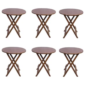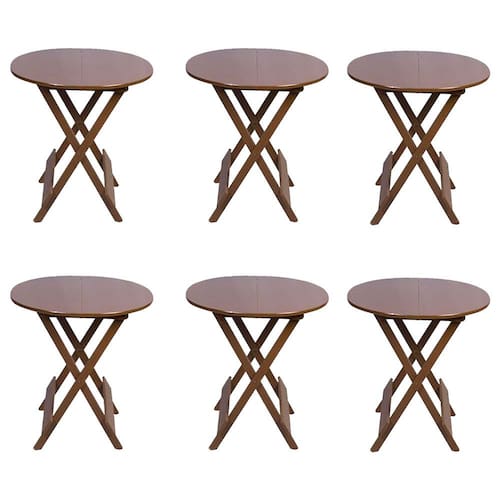 Kit 6 Mesas Redondas Dobráveis em Madeira Maciça 70x70 Imbuia Ideal para Bares e Restaurantes - Marrom