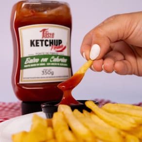 Ketchup - mrs taste Benefícios: com fibras, sem conservantes, sem glúten, sem óleo de palma, vegano, zero gordura, zero lactose, baixo em calorias, muito baixo em sódio e sem adição de açúcares. Ketchup com fonte de fibras Ketchup mrs taste é sensacional quem não ama ketchup e se for baixo em calorias, muito baixo em sódio e sem adição de açúcares e se for ainda fonte de fibras melhor ainda né tudo isso nós temos no nosso ketchup feito especialmente para uma alimentação saudável, nosso ketchup é um produto totalmente inovador no mercado, pelas suas características nutricionais, e pelo sabor, onde se mantém o sabor irresistível do ketchup, feito com tomates selecionados. As fibras, além do auxílio no bom funcionamento intestinal, ainda proporciona sensação de auxiliando no controle do peso, além de ajudar a controlar a e o . Tudo isso em um frasco de ketchup, só a smartfoods tem Mrs taste pode ser no preparo de sanduíches, saladas, salsichas, cachorros-quentes, batatas fritas ou aperitivos. Ingredientes: água, polidextrose, polpa de tomate, vinagre, cloreto de potássio, cebola, canela, espessantes goma xantana e carboximetilcelulose, aroma natural e edulcorantes sucralose e acessulfame de potássio.