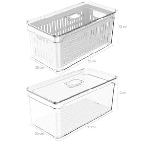 - Os organizadores possuem cesto e bandeja de drenagem que evitam que os alimentos fiquem molhados após a lavagem, ajudando a prevenir a deterioração precoce;