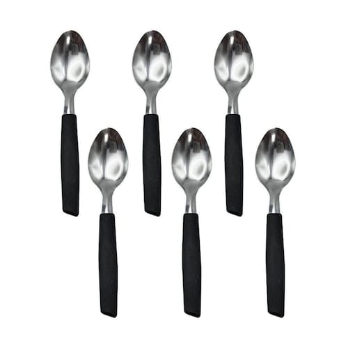 Kit com 6 colheres de chá/sobremesa Cabene com cabo plástico preto