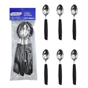 Kit com 6 colheres de mesa Cabene com cabo plástico preto