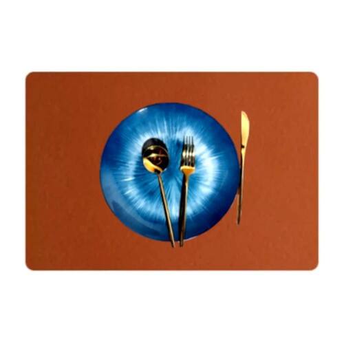 Kit 6 peças jogo americano mesa posta sousplat retangular Cor: caramelo Tamano: 43x30 Jogo americano couro retangular + porta copos