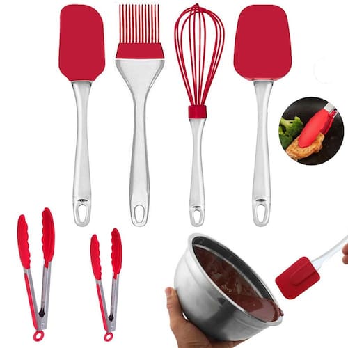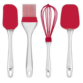 Cor Padrão: Vermelho para espátulas e pincel . O batedor de ovos também está disponível em Vermelho.