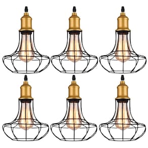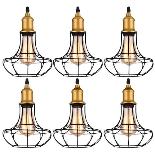 Kit 6 Pendente De Aço Taschibra 40w Vintage Lustre Preto 185 -