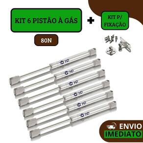 Kit 6 Pistão à Gás Com Amortecedor Para Armário Cozinha 80N