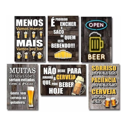 O Kit com 6 Placas Decorativas em MDF - Frases Boteco Bebidas é perfeito para dar um toque especial à decoração do seu ambiente. Composto por 6 unidades, esse kit oferece praticidade e estilo em um só produto.