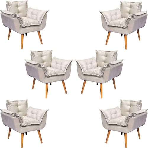 KIT 6 POLTRONAS ALICE SUEDE CORES PÉ TRAPÉZIO 30CM CASTANHO