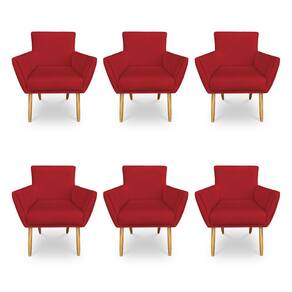 Kit 6 Poltronas Decorativa Leticia Suede Pés Palito Castanho - Pallazio - Vermelho