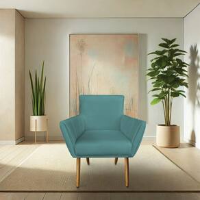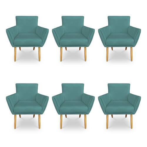 Kit 6 Poltronas Decorativa Leticia Suede Pés Palito Castanho - Pallazio - Azul Turquesa
